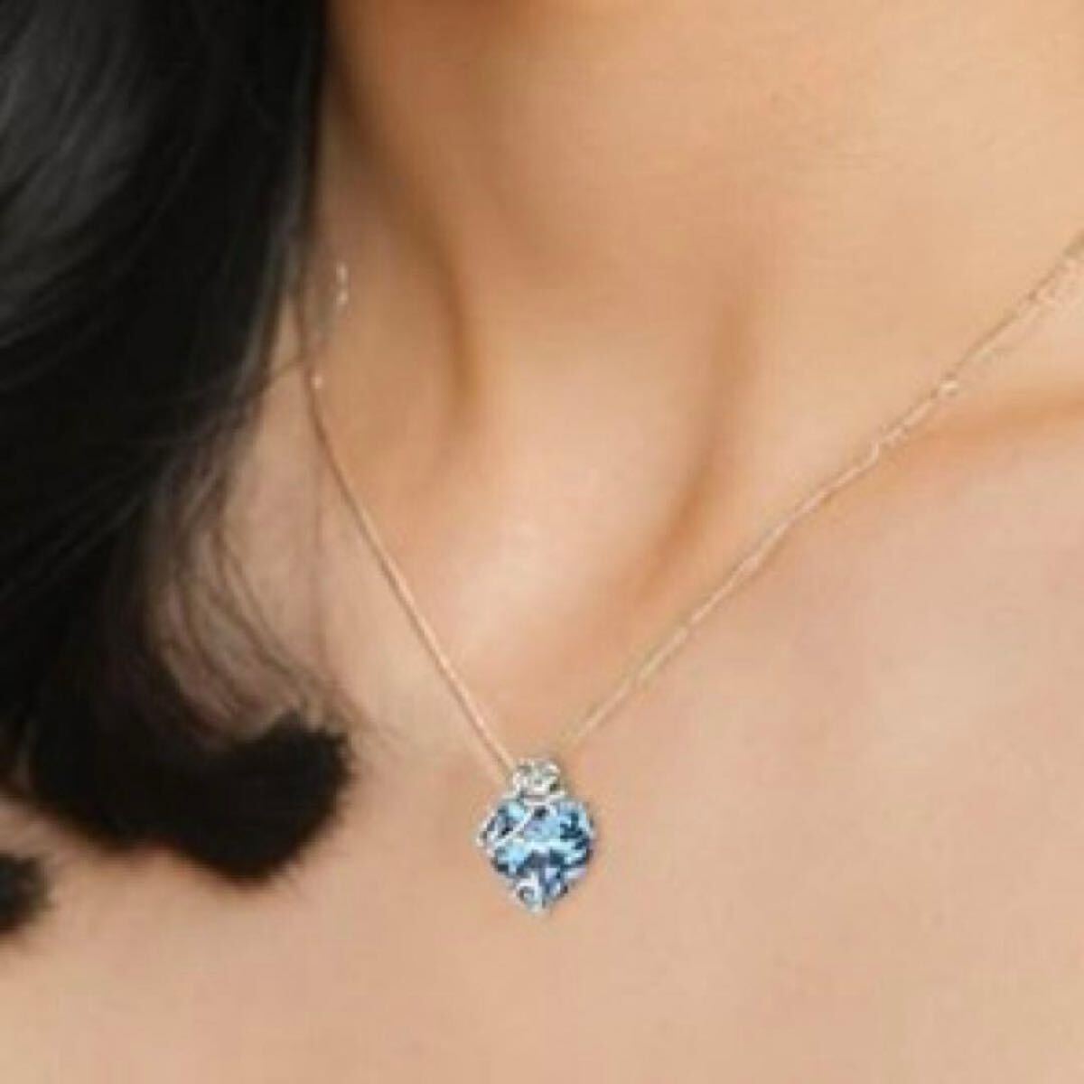 【商品仕様】 地金:SV925 シルバー (刻印有り) プラチナメッキ ★主石:合成アクアマリン★ペンダントトップ:(約)横13×縦17.5mm ★チェーン長さ:(約)40~45cm