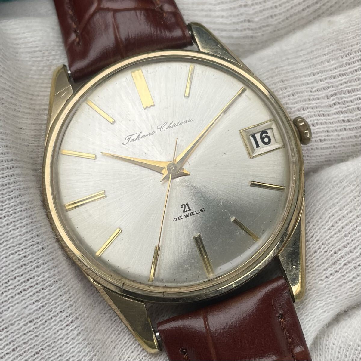 ビンテージ 幻のメーカー TAKANO Chteau Cal.534 21石 タカノ シャトー ゴールド 希少 掘り込みインデックス 風防綺麗 機械式手巻き