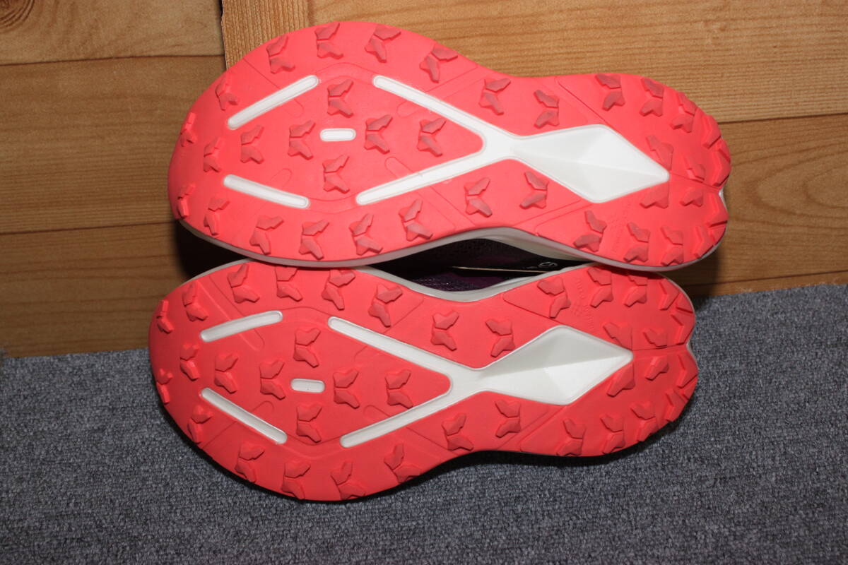 高いクッション性と推進力で走りをサポートし、100マイルのトレイルランニングレースにも対応するモデルです。