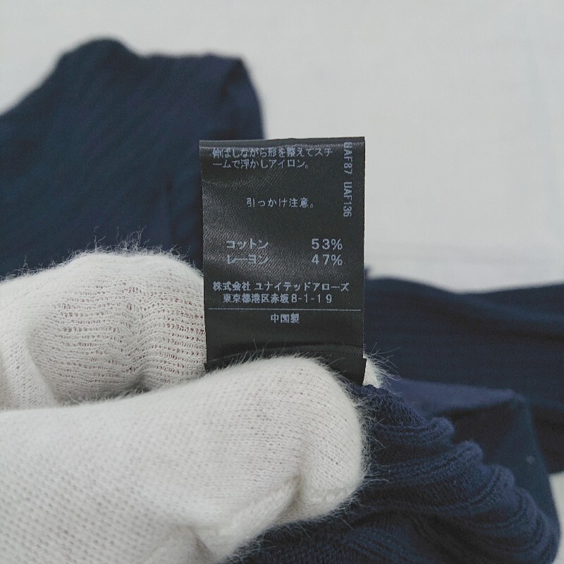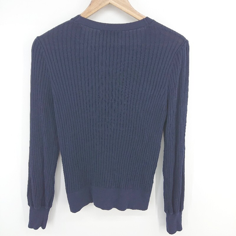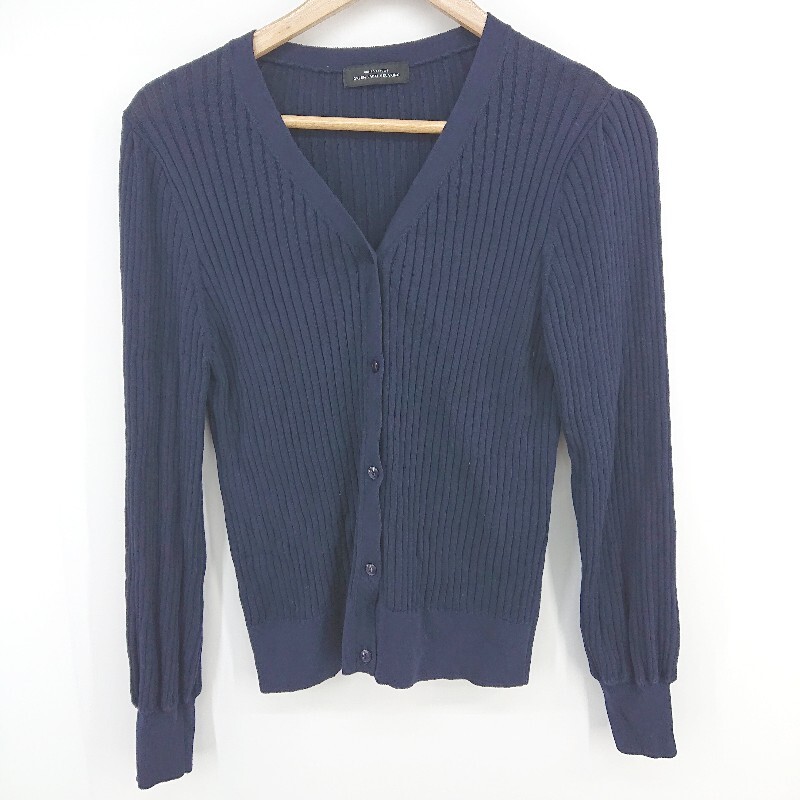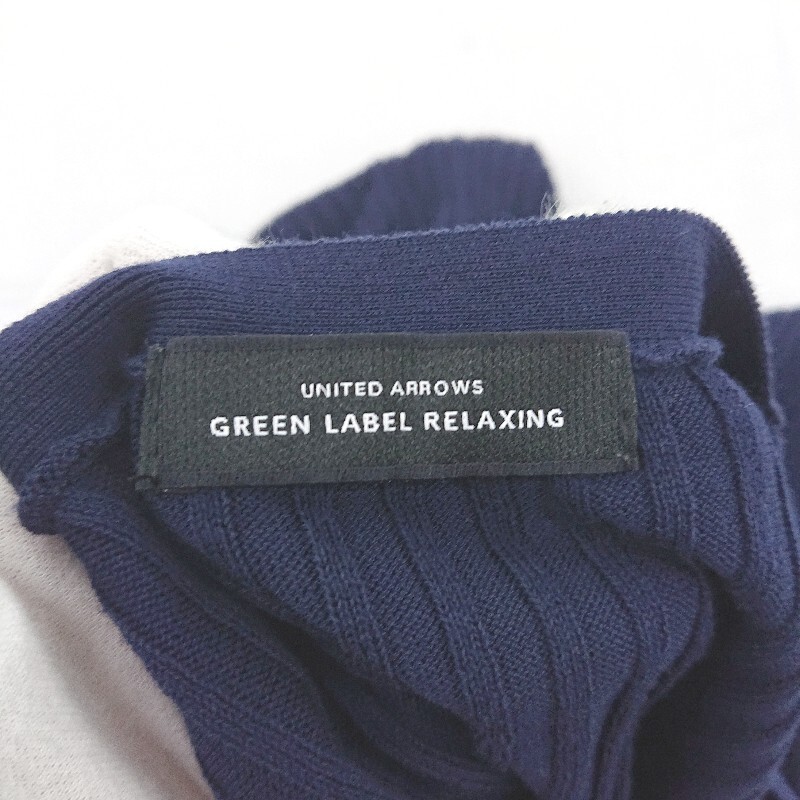◇ green label relaxing UNITED ARROWS 無地 Vネック コットンニット 長袖 カーディガン ネイビー レディース P
