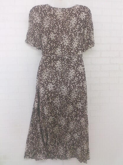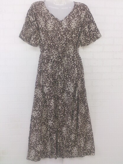 ◇ ◎ Discoat ディスコート 花柄 半袖 ロング ワンピース サイズF ブラウン アイボリー レディース P