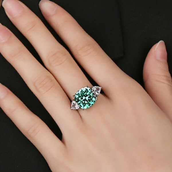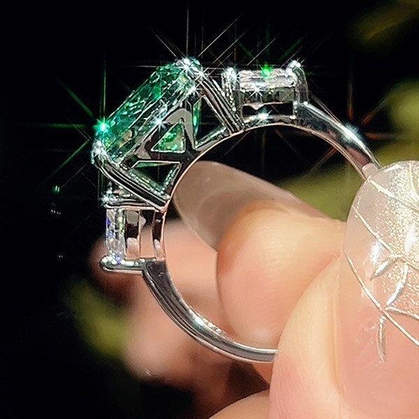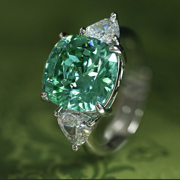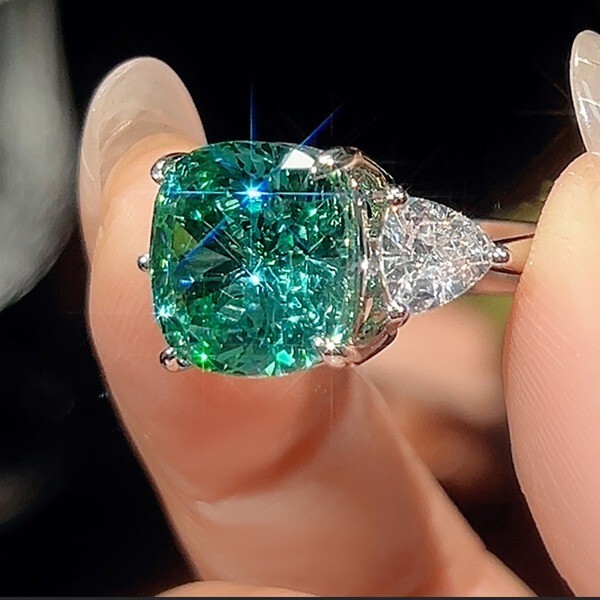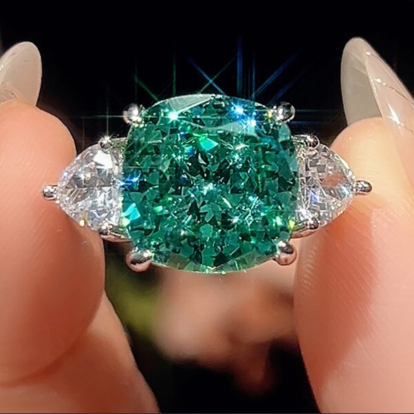 ヴィンテージ 12*12mm グリーントルマリン リング 高級ジュエリー ◆最初の入札者様は開始価格で購入可能 Kn_3102