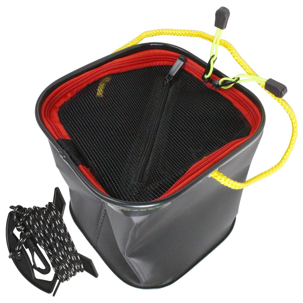 折り畳み式 コンパクト バケツ 20cm『持ち手紐』ロープ/メッシュカバー付き 水汲み ブラック 黒 釣り ガーデニング タンク 砂遊び