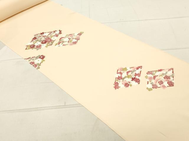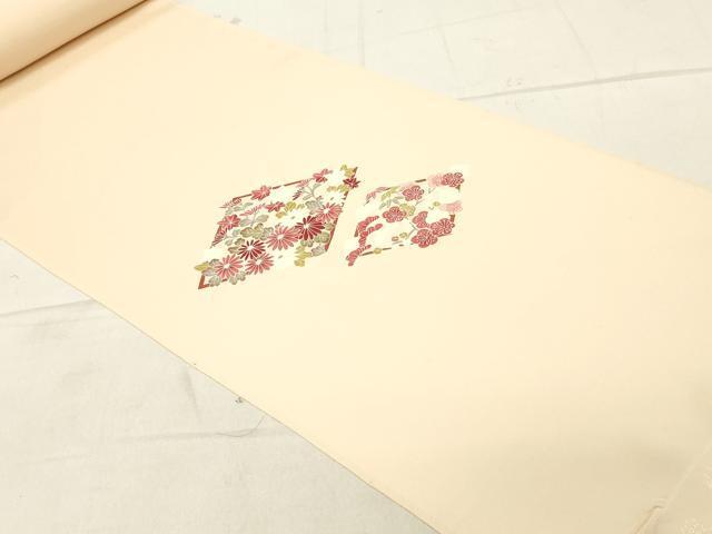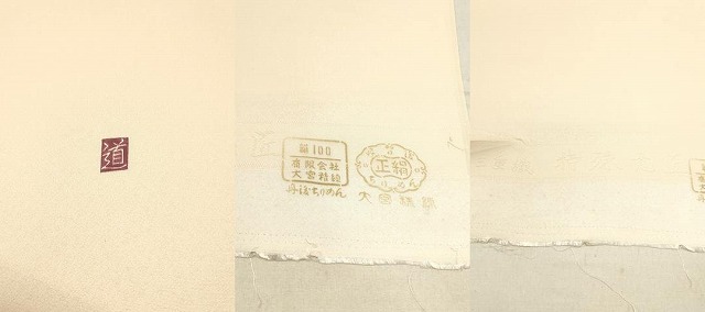 | 【正絹】 状態は参考画像のように表地所々・裏面所々に薄い汚れがございますが その他特に目立ったシミ汚れなどもなく大変良い状態です。 大変上質な逸品になります。 お安く出品致しますので、是非この機会にいかがでしょうか? ※反端から約592?の所で2分割になっております。