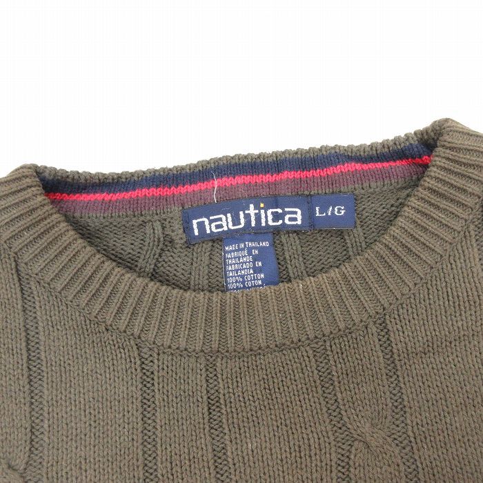 【商品名】 XL★古着 ノーティカ 長袖 ブランド セーター メンズ 90年代 90s ワンポイントロゴ 大きいサイズ コットン クルーネック 濃緑