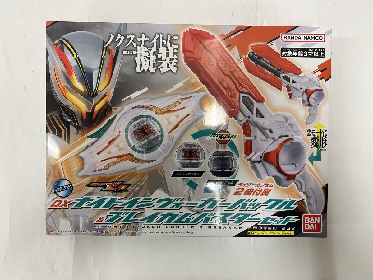 DXナイトインヴォーカーバックル&ブレイカムバスター 玩具 価格 8,030円(税込) 2025年11月29日発売 対象年齢 3歳以上 ※発売日(予定)は地域・店舗などによって異なる場合がございますのでご了承ください。 『仮面ライダーゼッツ』より、 「DXナイトインヴォーカーバックル&ブレイカムバスターセット」が登場! 「DXナイトインヴォーカーバックル」、「DXブレイカムバスター」のセット商品です。 ■DXナイトインヴォーカーバックル 「変身ベルトDXゼッツドライバー(別売り)」のバックルを付け替えることで、「ナイトインヴォーカー」となります。 付属の「イレイスカプセム」を「変身ベルトDXゼッツドライバー(別売り)」にセットすると、 なりきり遊びが楽しめます。 ※「変身ベルトDXゼッツドライバー」は別売りです。 ■DXブレイカムバスター ブレードパーツの付け替えで、カリバーモード・ランチャーモードの2つのモードに変形! 「ブレイカムバスター」のトリガーを引くと攻撃音が発動し、さらにカプセムをセットして回転させると必殺技が発動します。 モードに応じて攻撃音や必殺技音が変化!ランチャーモードではバレルが展開します。 ヴォイドカプセムが1個付属。 ※ヴォイドカプセムをDXゼッツドライバーにセットするとエラー音が鳴ります。 [セット内容] ・ナイトインヴォーカーバックル…1 ・ブレイカムバスター…1 ・イレイスカプセム…1 ・ヴォイドカプセム…1 [使用電池] ・LR44×3個(付属) (本商品のセット内容以外は付属しません。) | ||||