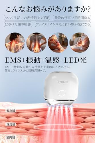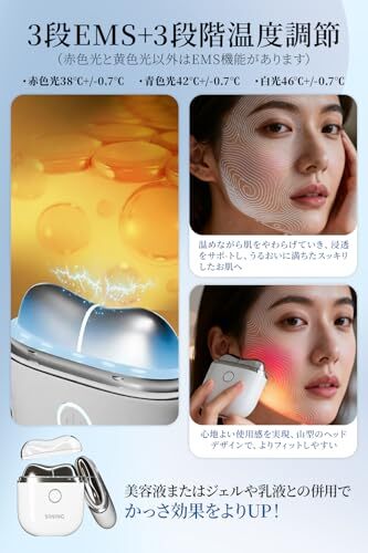 【EMS+7色LED光】EMSは3段階調整可能です。初めてEMSを使用する場合は、Level1から順に慣らして使用することを推奨します。7色LED光:赤光/青色/黄光/緑光/青光/紫光/白光の7種類の光を使用し、肌を効率よくアプローチし、快適なスキンケア体験を楽しみください。 *(本製品は感応式起動: ヘッドの2つの電極が肌に接触すると起動します。)