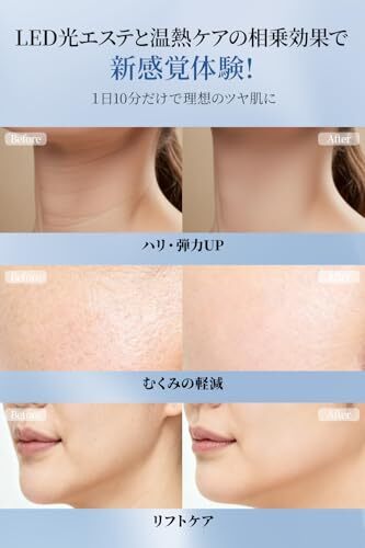 【日常使用ガイド】 洗顔後、適量のエッセンスまたは乳液状のスキンケア製品を取り、顔、首や体のその他ケアが必要な部位に均一に塗布してください。続いて、適切なモードと強度を選択し、製品を肌に密着させて目標部位まで軽くスライドさせると、引き締め効果が得られます。長期的に続けて使用すると、効果はさらにアップ!