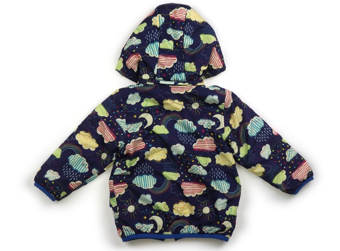 裏ボア中綿入りコート。表地・裏地・中綿すべてポリエステル素材です。パイピングに毛玉、左袖先に黄色いシミあり。フードの取り外しが可能です。