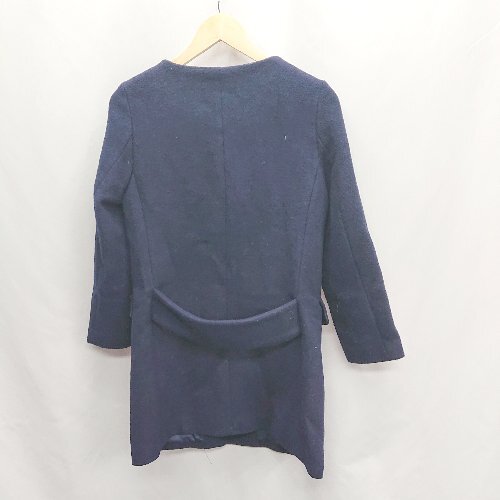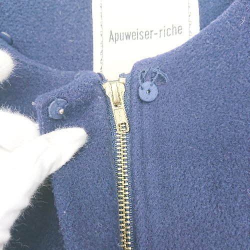 ◇ Apuweiser riche アプワイザー リッシェ ウール90% キレイめ 長袖 ノーカラー コート サイズ0 ネイビー レディース E