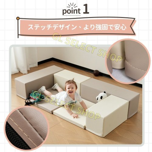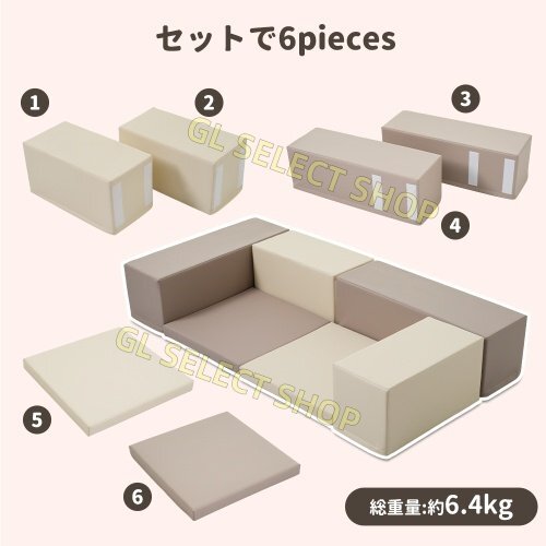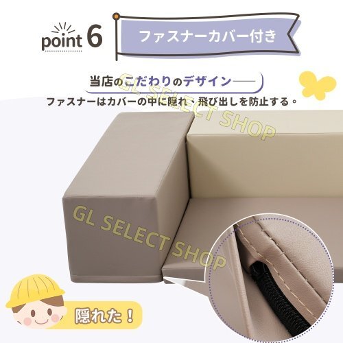 【ベージュxブラウン】おもちゃ ソフトブロック アスレチック クッション 布製 大型 滑り台 こども キッズ 幼児 クリスマスプレゼント