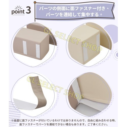 • 【パーツの側面に面ファスナー付き、パーツを連結して集中する。】※各面に面ファスナーが付いているわけではありませんので、自由に組み合わせる時、面ファスナーでパーツを連結できない場合もあります。ご了承ください。
