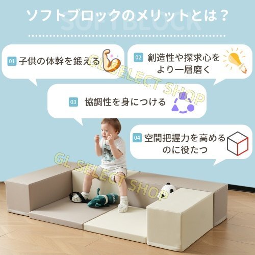 • 【ソフトブロックのメリットとは?】01子供の体幹を鍛える02創造性や探求心をより一層磨く03協調性を身につける04空間把握力を高めるのに役たつ