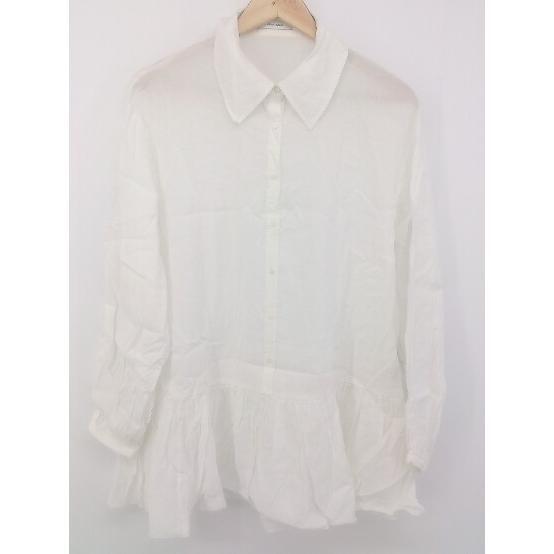 ◇ JEANASIS ジーナシス 裾ティアード 長袖 ミニ チュニック シャツ ワンピース サイズF オフホワイト レディース P