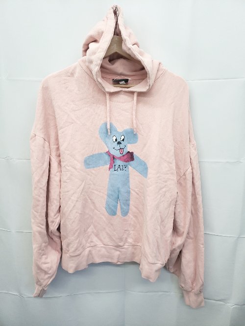 ◇ Θ LAZY OAF レイジーオーフ 前面プリント 長袖 プルオーバー パーカー サイズS ピンク系 レディース E