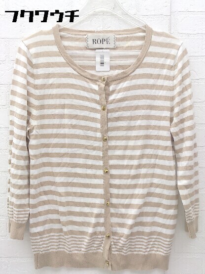 ◇ ROPE ロペ コットン ボーダー 長袖 ニット カーディガン サイズM ホワイト ベージュ系 レディース