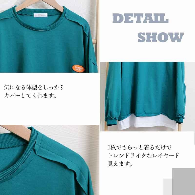 まるでレイヤードしたようなデザインなので何にでも合わせやすく、合わせるボトムスも選ばずコーデも楽ちん。