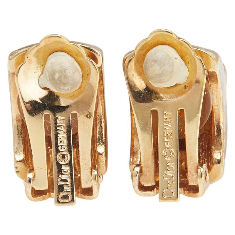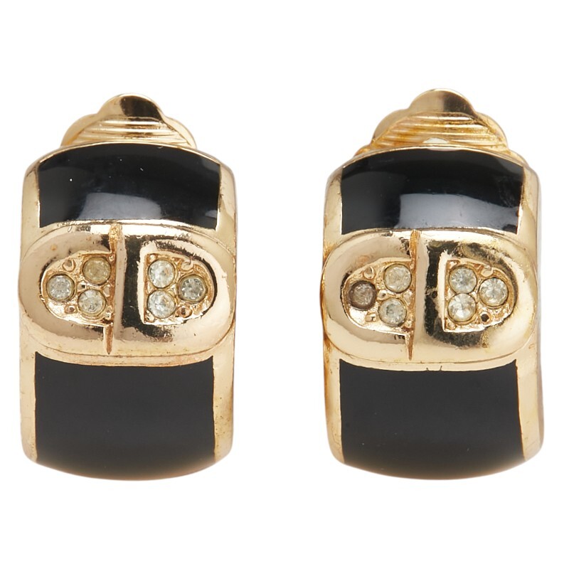 ディオール CDロゴ ラインストーン イヤリング ゴールド ブラック メッキ レディース Dior 【中古】