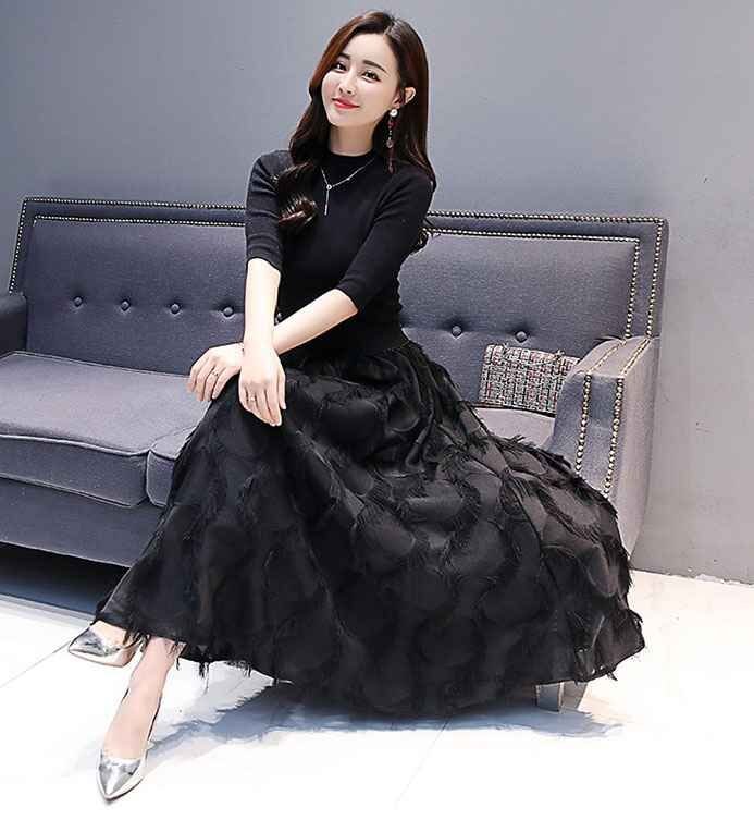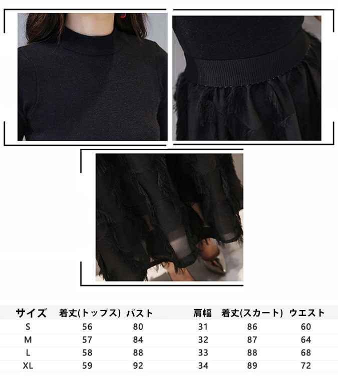 ロングチュールスカートと黒のトップスの2点セットです。