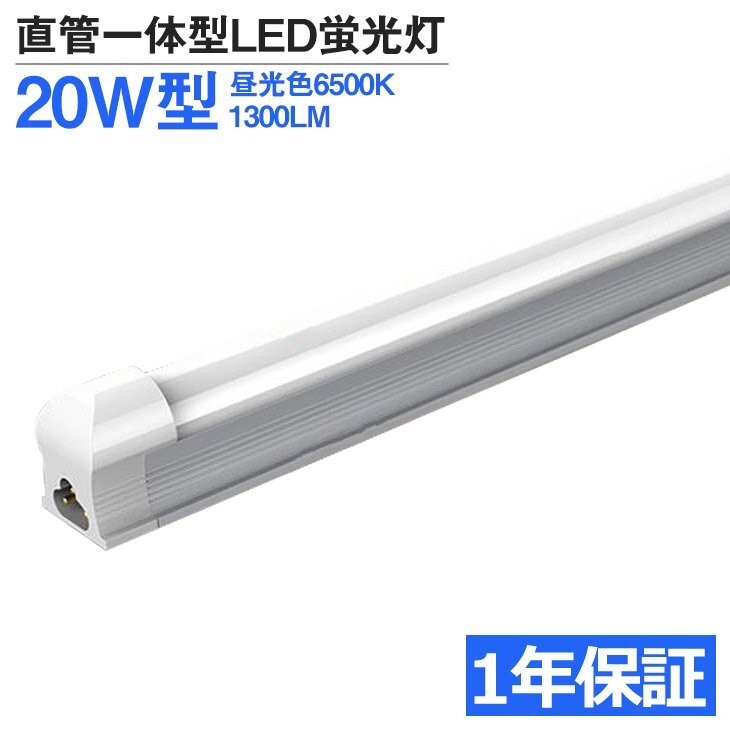 即納!5本 一体型 LED蛍光灯 20W形 60cm 昼光色 6500K 高輝度 1300LM 消費電力9W 広角 AC 110V 送料無料 1年保証
