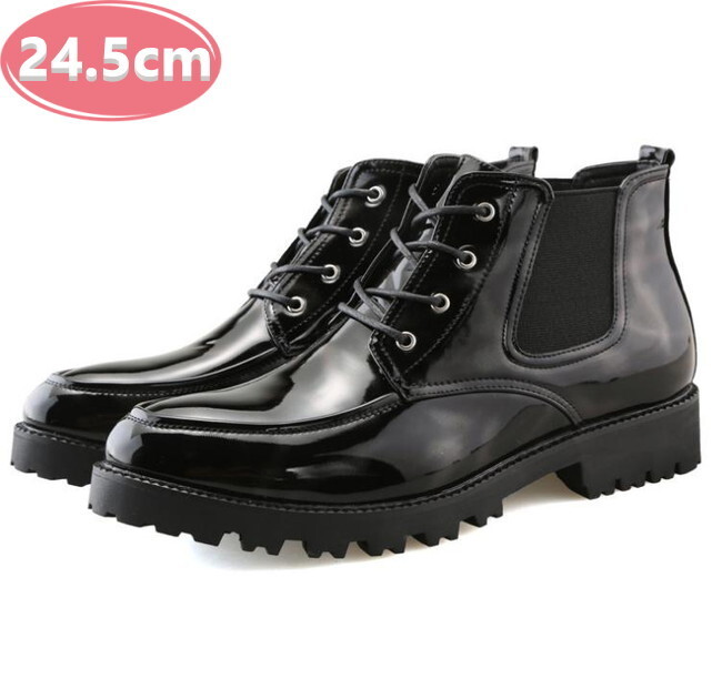 サイドゴア メンズ ビジネス PUレザー シューズ ブラック 24.5㎝ 革靴 靴 カジュアル 屈曲性 通勤 軽量 インポート品【n162】
