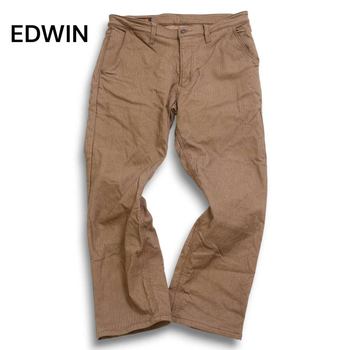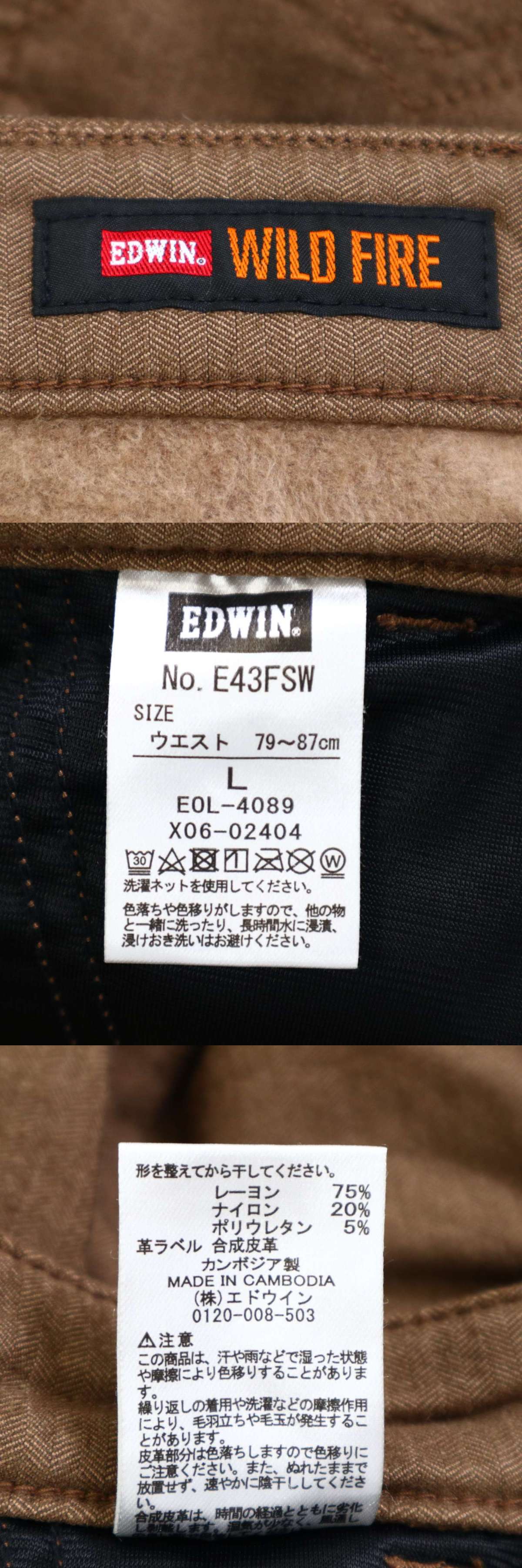 EDWIN エドウィン E43FSW WILD FIRE★ 秋冬 ストレッチ 防風 防寒 裏起毛 ヘリンボーン パンツ Sz.L メンズ バイク