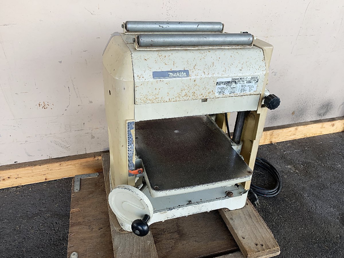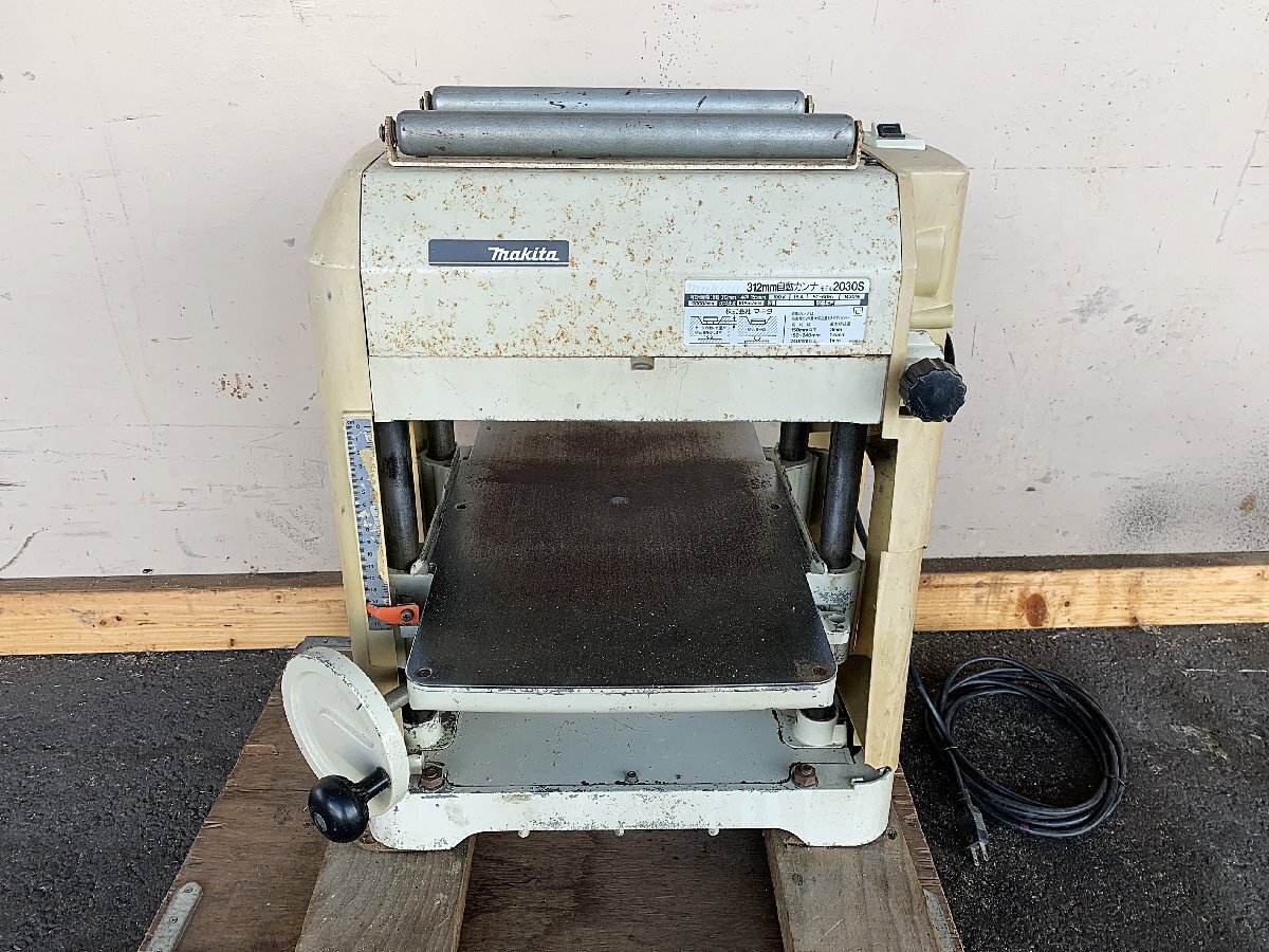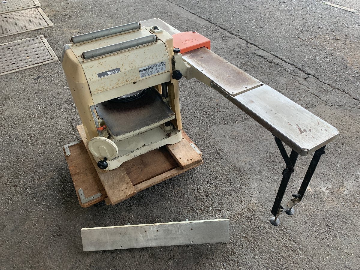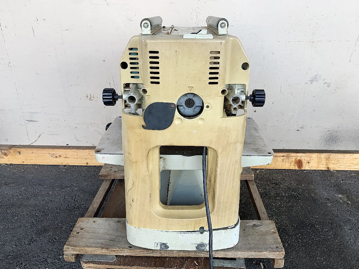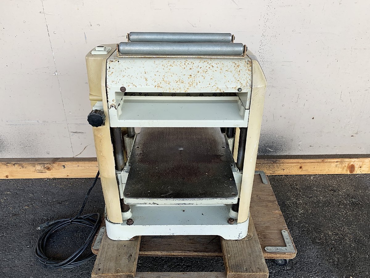 商品は写真のものですべてです。 台車は商品に含みません。 動作確認済です。 有効切削幅:自動312mm 手押155mm 回転数:9000/min 送材速度:10.5m/min 100V 15A 50-60Hz 1430W 製造年月93年3月 ●簡易的な清掃はしておりますが、取り切れない汚れ・社名跡がある場合がございます。 ●リユース品ですので細かな傷・打痕・サビ・塗装剥がれ・変色等があります。 ●神経質な方・完璧なものをお求めの方は入札をお控えください。 ●外国籍の方と以前のお取り引きでトラブルが発生した為、日本語が細かく理解出来ない方は入札をご遠慮下さい。 ●Please refrain from bidding if you are unable to understand Japanese in detail, as we had trouble with a previous transaction with a foreign national. | ||