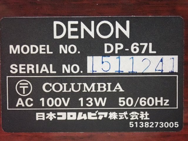 | DENON デノン/デンオン DP-67L アナログプレイヤー 元箱付 ÷ 7431B-2 | |||||||||||||||||||||||||||||||||||
