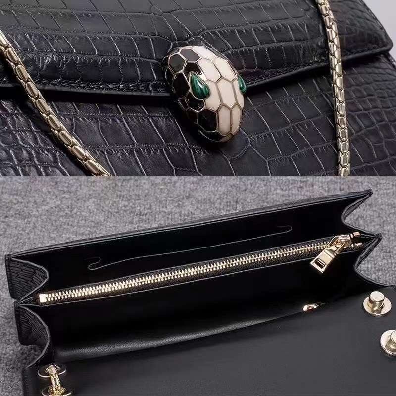 定価23万円 クロコダイル 腹革 ショルダーバッグ 革 ワニ革 レディースバッグ ハンドバッグ 黒 本革 斜め掛けバッグ