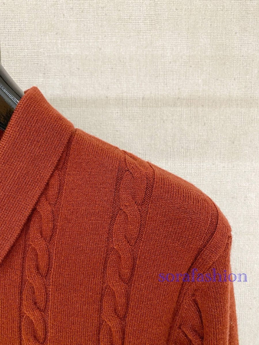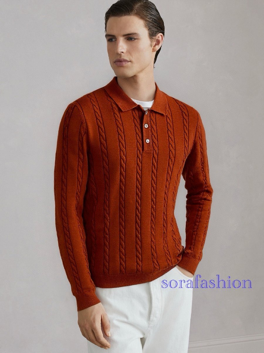 BRUNELLO CUCINELLI ブルネロ クチネリ メンズニットポロシャツ ニットセーター レッド 56サイズ トップス 長袖T-シャツ ケーブル柄 綿