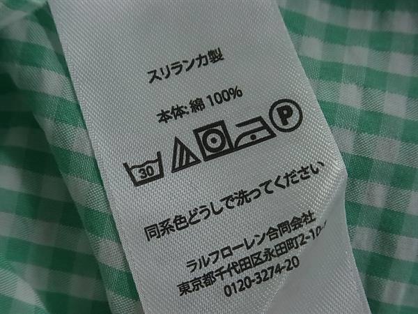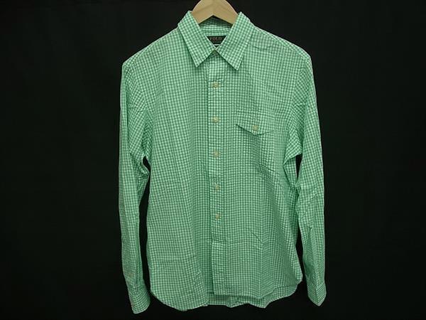 ■極美品■ POLO RALPH LAUREN ポロラルフローレン コットン チェック柄 Yシャツ 長袖 トップス サイズ M ミントグリーン系 DI7163