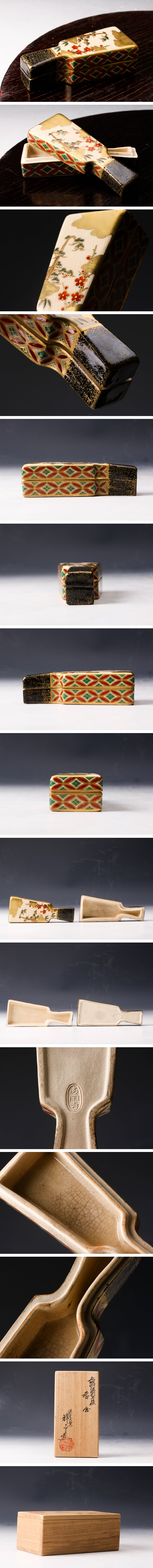 【佳香】杉田祥平 清閑寺窯 色絵仁清羽子板香合 共箱 茶道具 本物保証