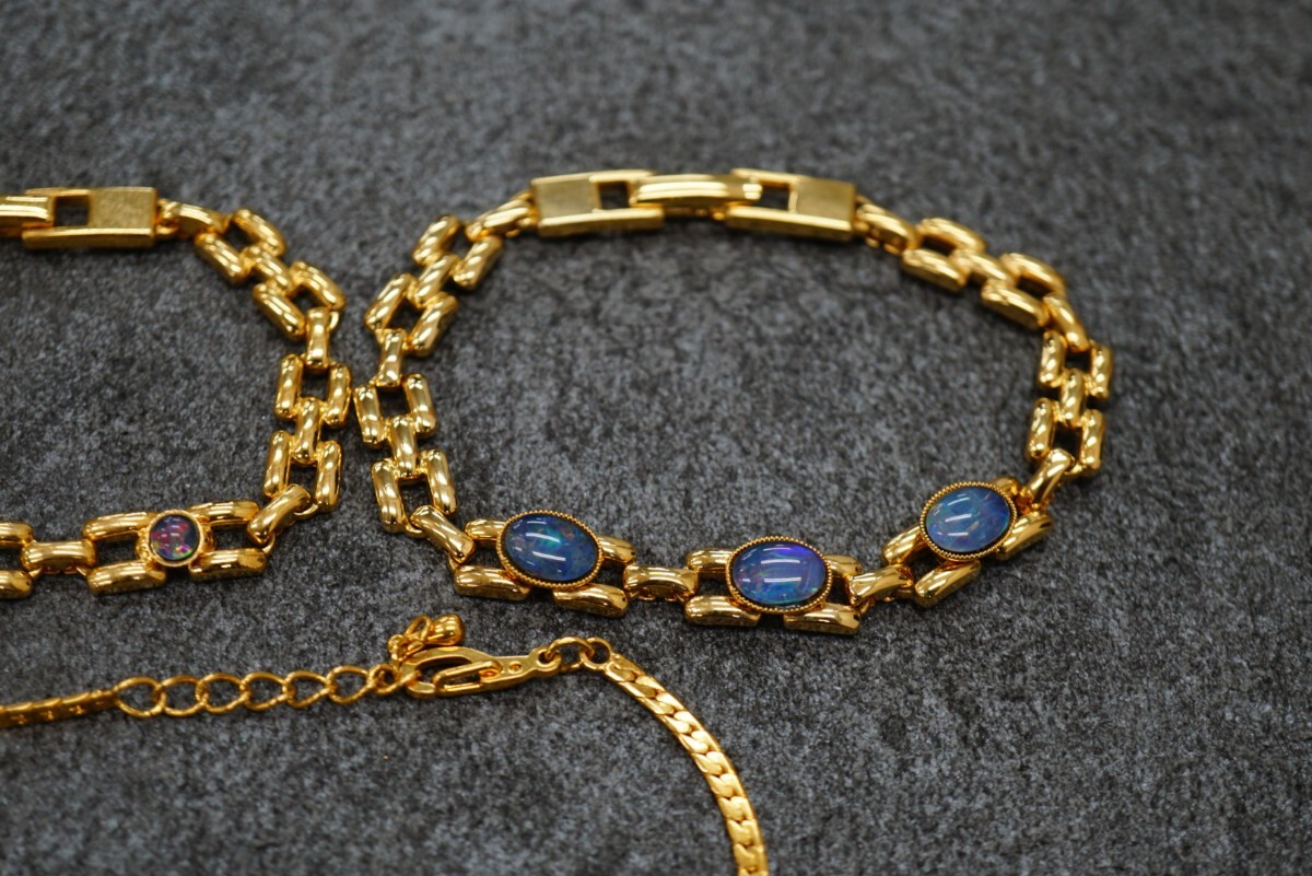 B315 トリプレットオパール ゴールドカラー ブレスレット 3点セット ヴィンテージ アクセサリー opal 大量 まとめて おまとめ まとめ売り