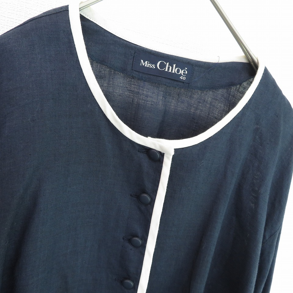 ミスクロエ Miss Chloe ヴィンテージ リネン カーディガン ブラウス ネイビー x786042