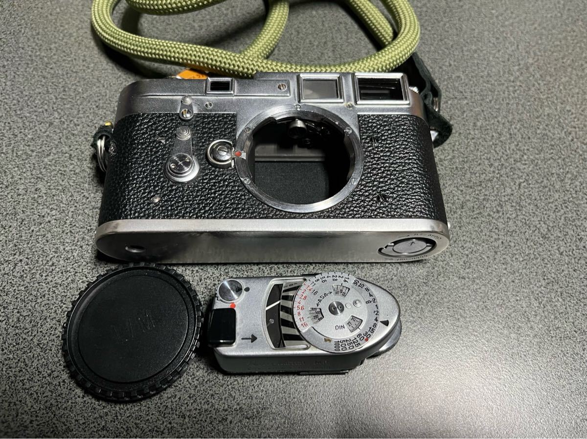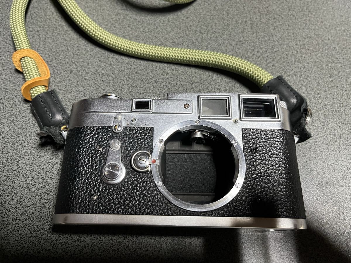 ご覧いただきありがとうございます。 Leica ライカ M3 ボディ シングルストローク の出品です。シリアルナンバーからダブルストロークの時代の物だと思うのですがシングルストロークに変更されています。外観はやや傷有りとしてますが、年代を考えると悪くない状態だと思います。少し難ありなのは一点だけフィルムカウンターのもどりが悪くスプールを抜いても戻らない状態です、戻る時もあるのですが現状、もどりません。フィルムが終われば巻けなくなるので当方はあまり問題に思っていませんでした。注油等すれば良いのかもしれませんが下手にいじりたくありませんので、気になる方は修理をお勧めします。その他動作は数本フィルムで撮影しましたが、問題無しです。シャッター幕綺麗シャッター速度も高速から低速迄、細かな精度はビンテージカメラですので保証とまではいきませんが、切れています。肝心のファインダーはカビや曇り、バルサム切れなど無くとてもクリアで綺麗です、二重像も縦ずれなど無くしっかり見えています。M3はファインダーが重要だと思いますのでこの点はとても良い状態です。ストラップ、ライカメーター、純正ではありませんがボディキャップをおつけします。このカメラで撮った写真も載せておきます。以上、フィルムカウンターに問題あるものの、ファインダーの状態良く、撮影可能な個体ですがなにぶんビンテージにカメラになりますのでその点ご理解頂ける方のみ入札いただきますようお願い致します。それではよろしくお願い致します。