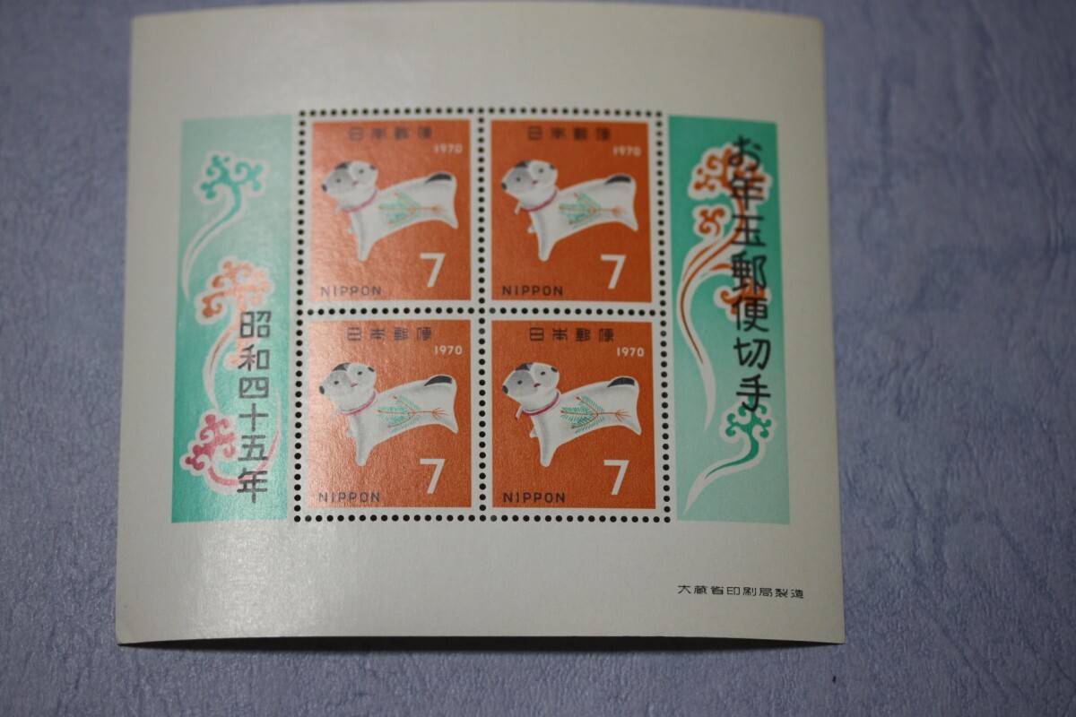 訳あり 年賀切手 昭和45年用 守り犬 小型シート NH