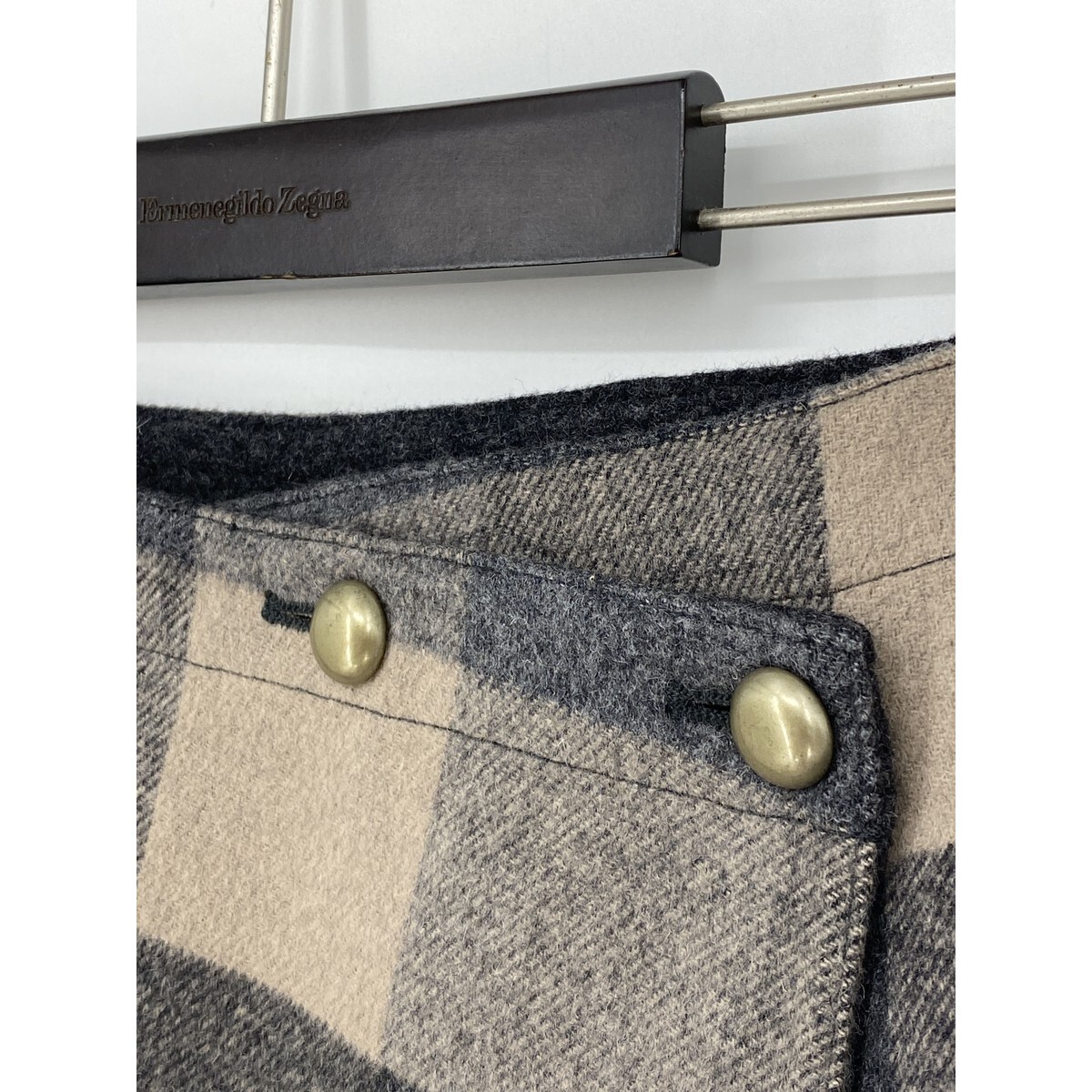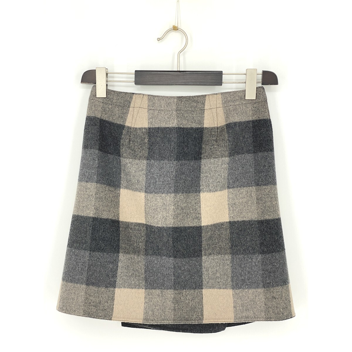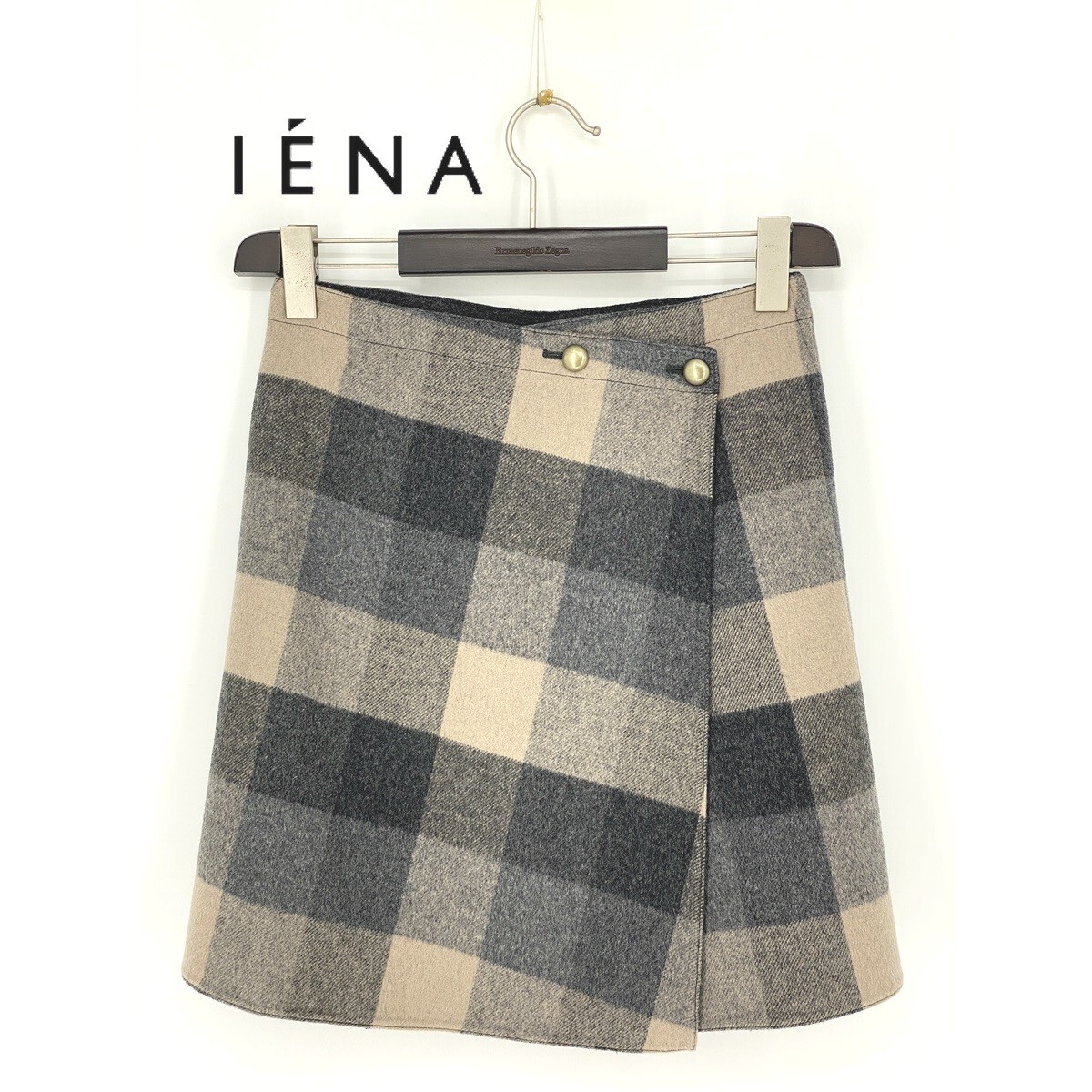 B0474/極美品 IENA イエナ ウール チェック リバーシブル 金ボタン ミニ 膝丈 ラップ 巻きスカート 38 M程 灰色 ベージュ レディース