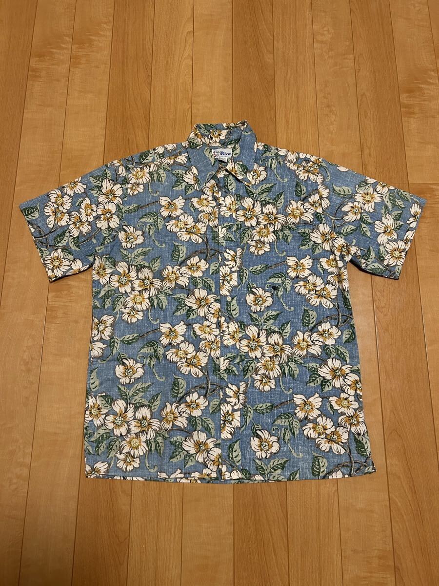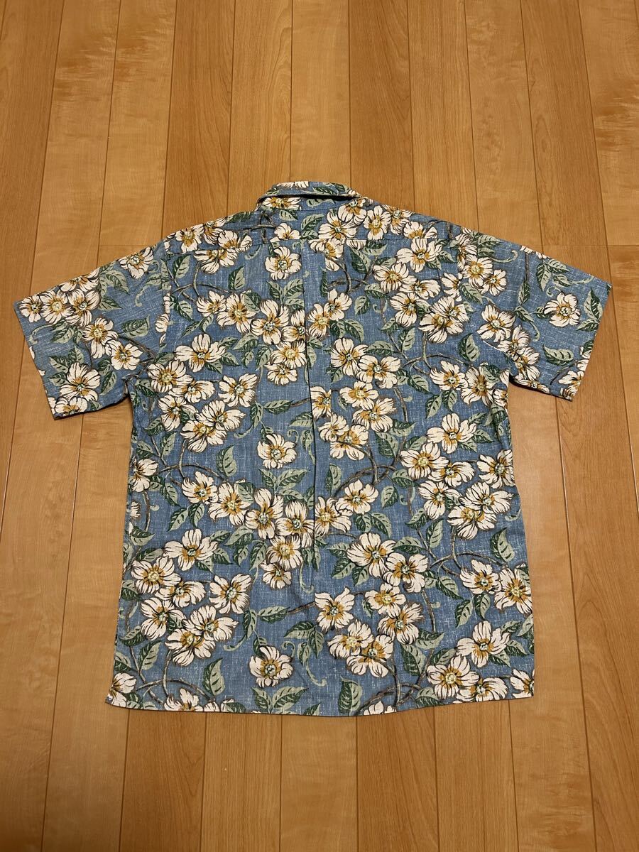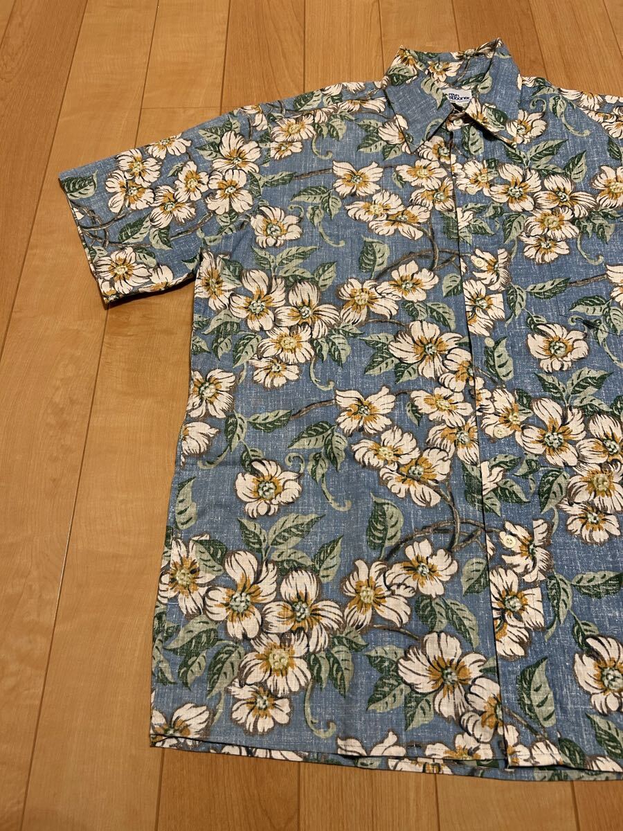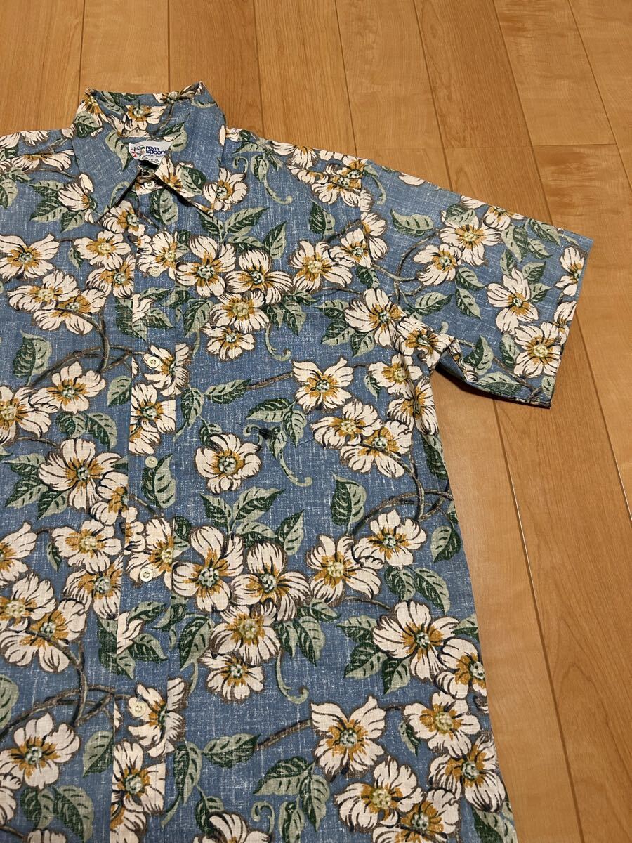 良品☆90sレインスプーナー メンズサイズM大き目.日本XL並 裏使い生地.半袖アロハシャツ/オリジナルビンテージ 花&葉っぱ総柄 ビキニタグ