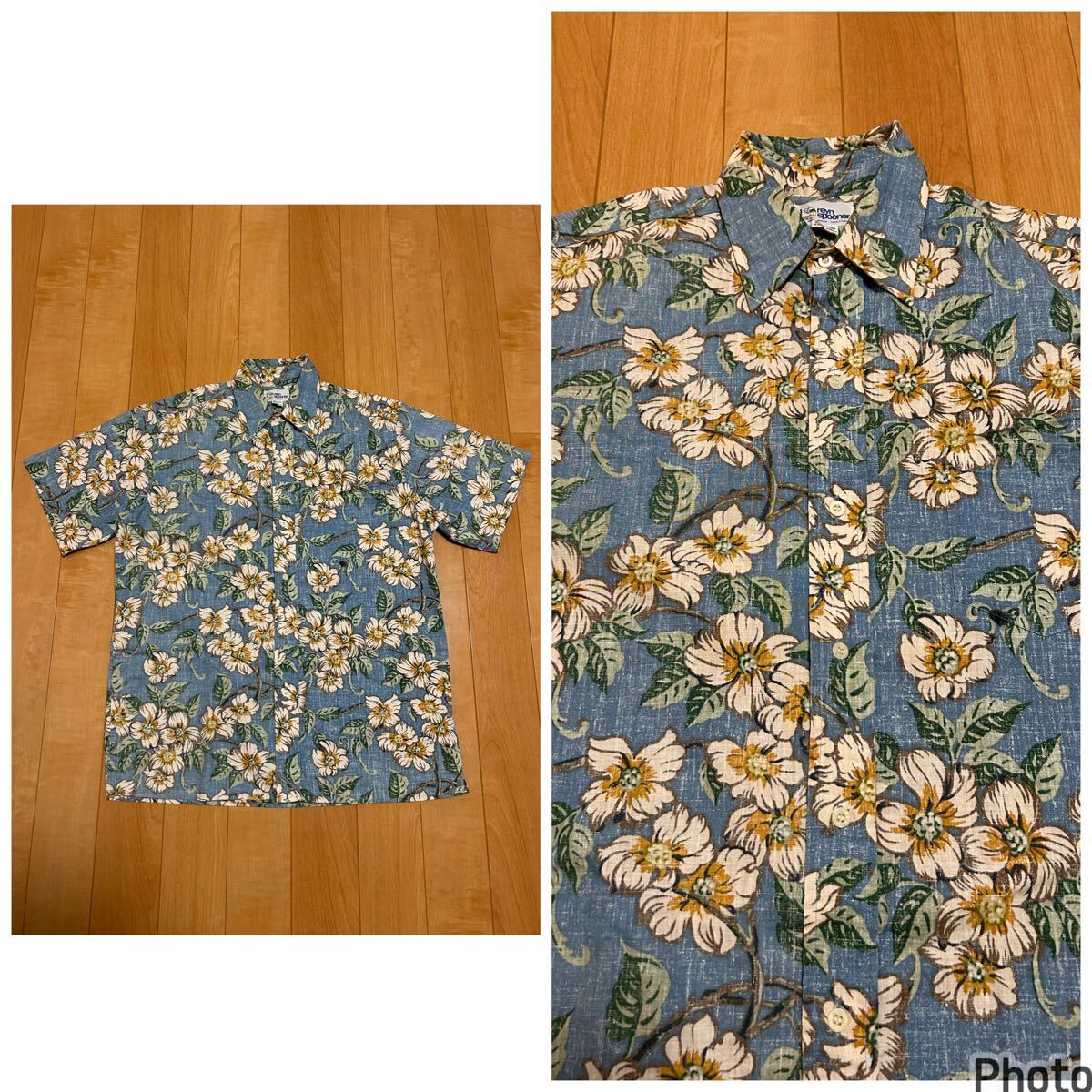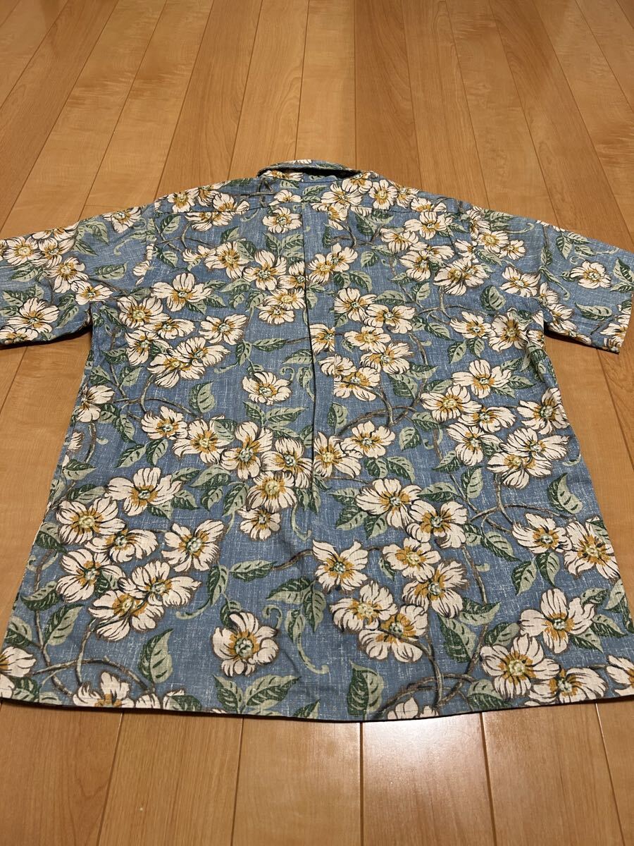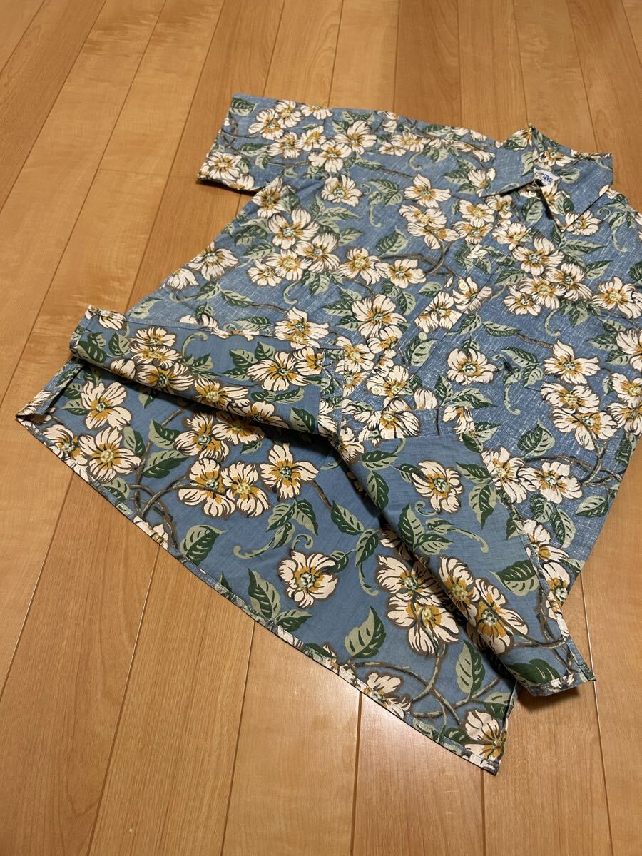 良品☆90sレインスプーナー メンズサイズM大き目.日本XL並 裏使い生地.半袖アロハシャツ/オリジナルビンテージ 花&葉っぱ総柄 ビキニタグ