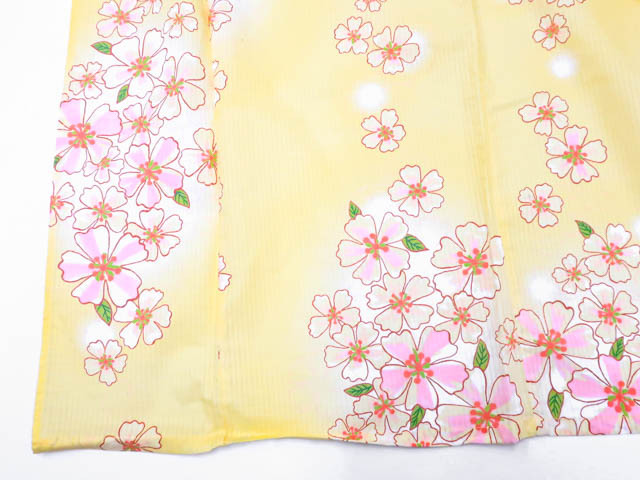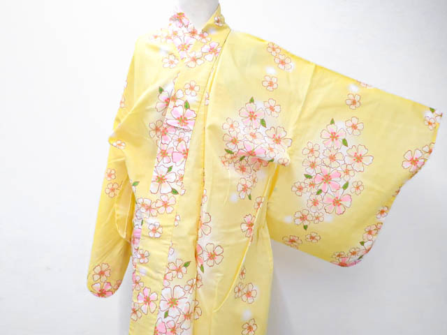 リサイクル商品のため、両前袖に薄汚れがございますが着用可能なお品です。 地色は 黄です。 1枚目の画像が近いお色かと思われます。 素材は綿です。 |