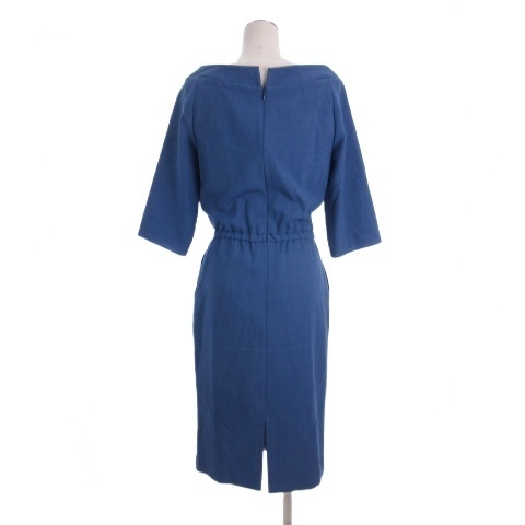 シップス SHIPS ワンピース 7分袖 ひざ下丈 ウエストマーク 36 ブルー ■FF レディース
