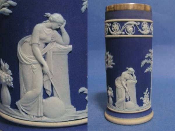 ◎1910年代 ウェッジウッド 青色を被せた白のジャスパー 円筒形花瓶 「女神」◎ri