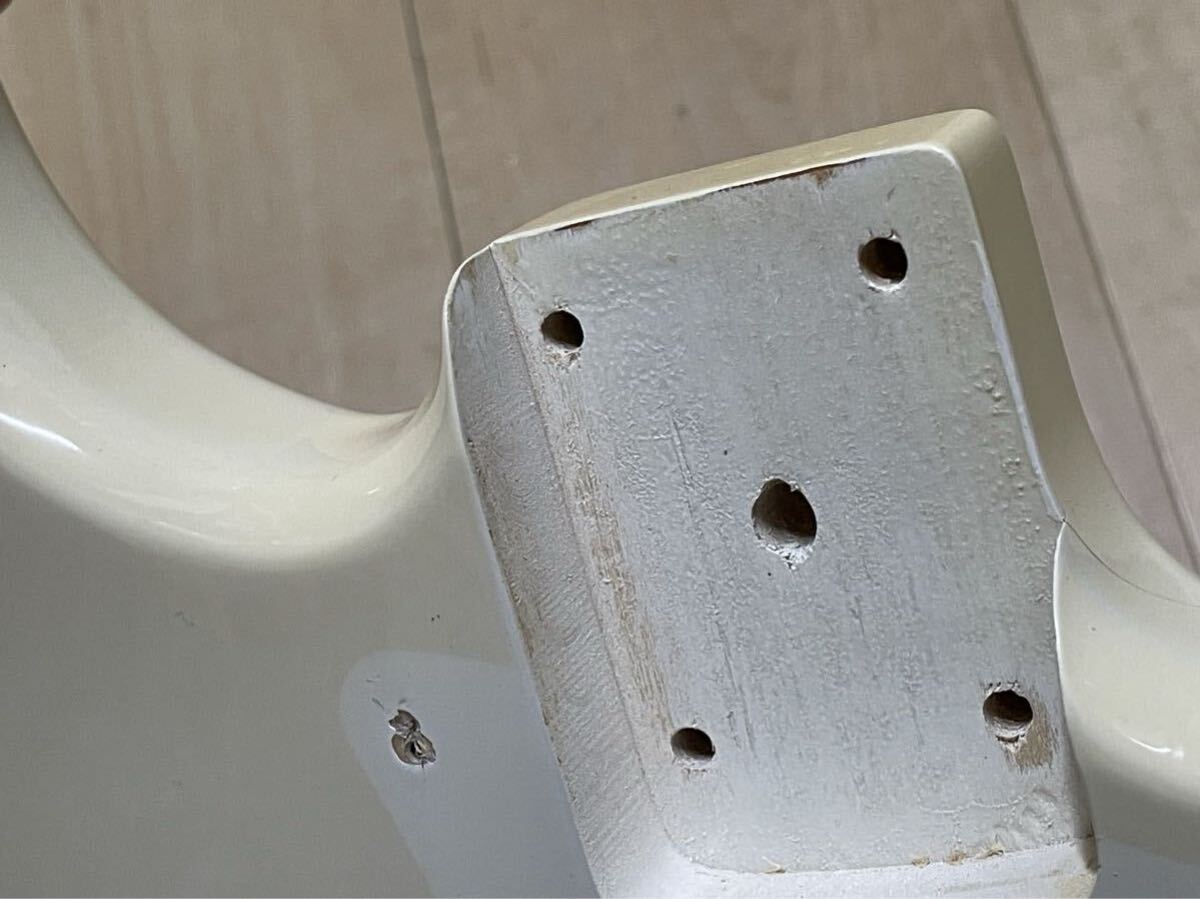 ヒビ割れあり(画像④⑤)。ネックを外して確認したところ内側に亀裂等見られないので塗装割れと思われます。ほか指板に凹みあり(画像8)。