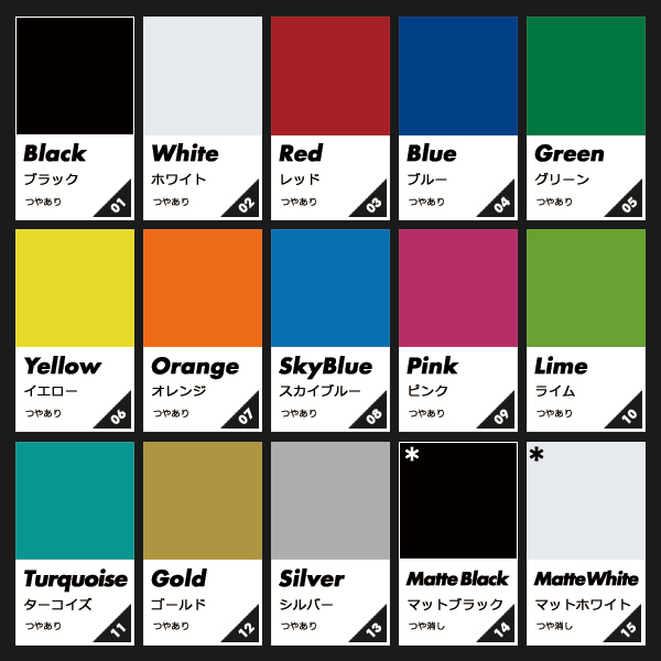 ※カラーは画像で確認してください。シートはグロス(ツヤあり)が基本ですがブラックとホワイトのみマット(ツヤ消し)があります。
