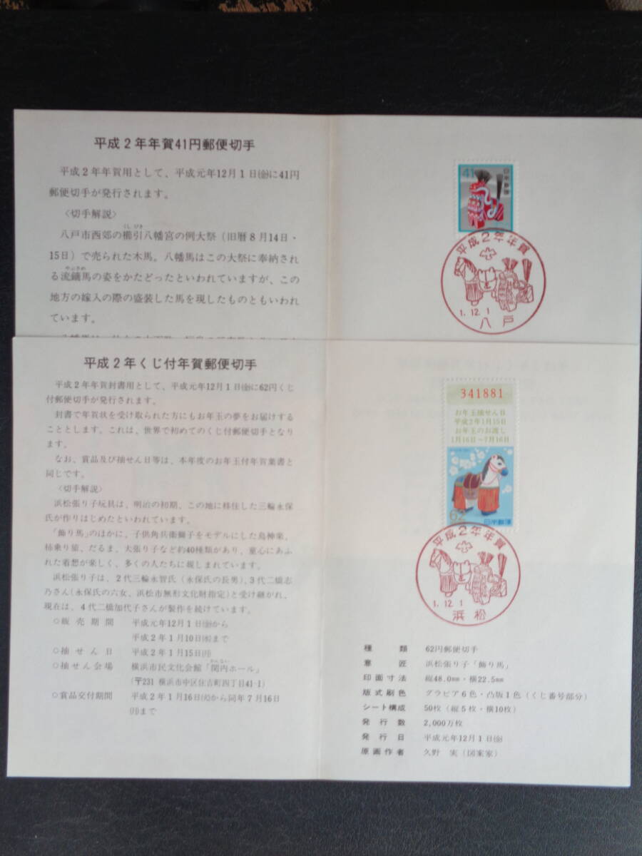 初日印     切手説明書    1989年    平成2年用年賀切手