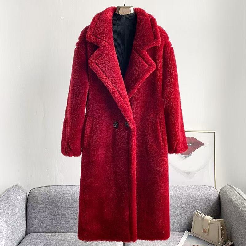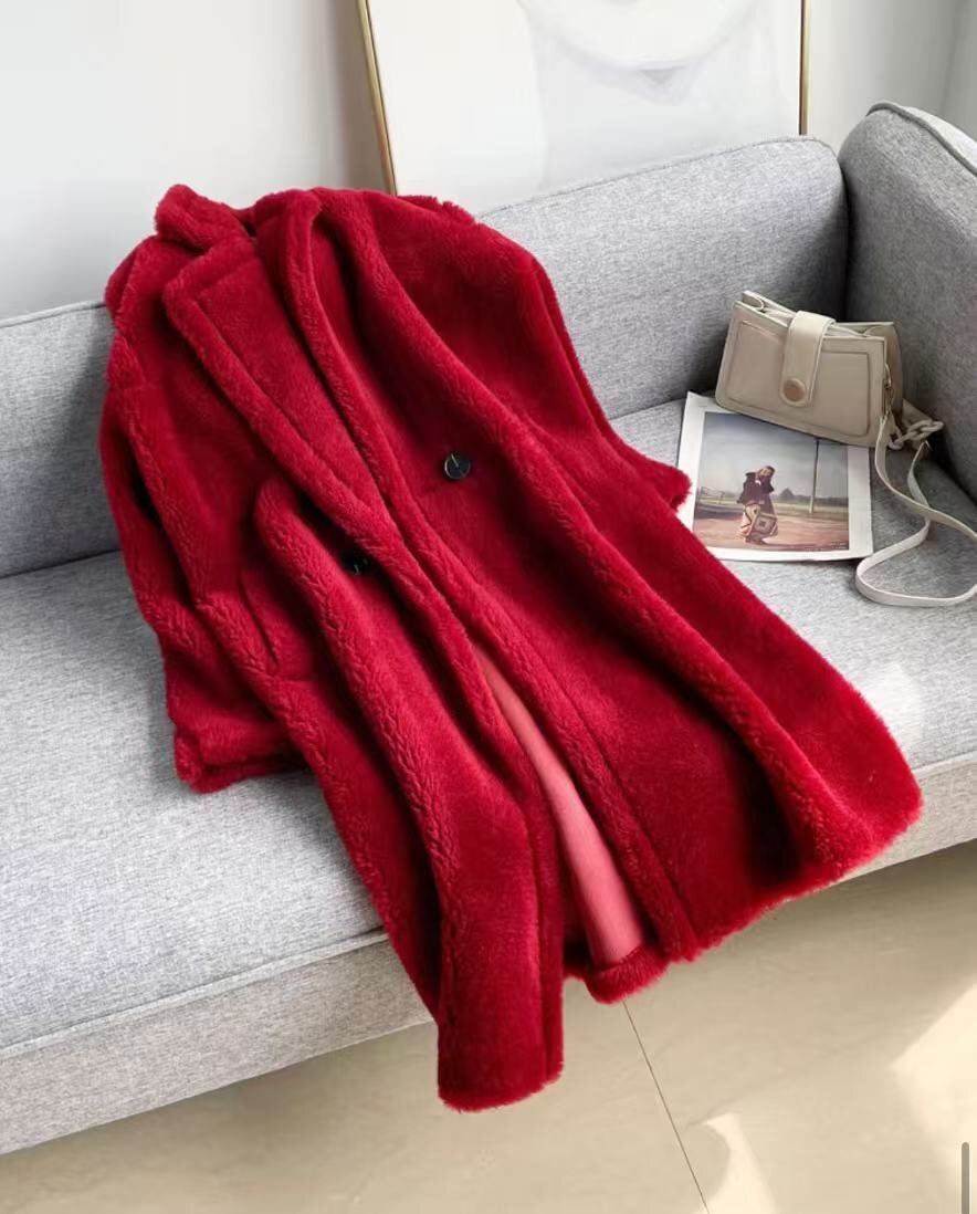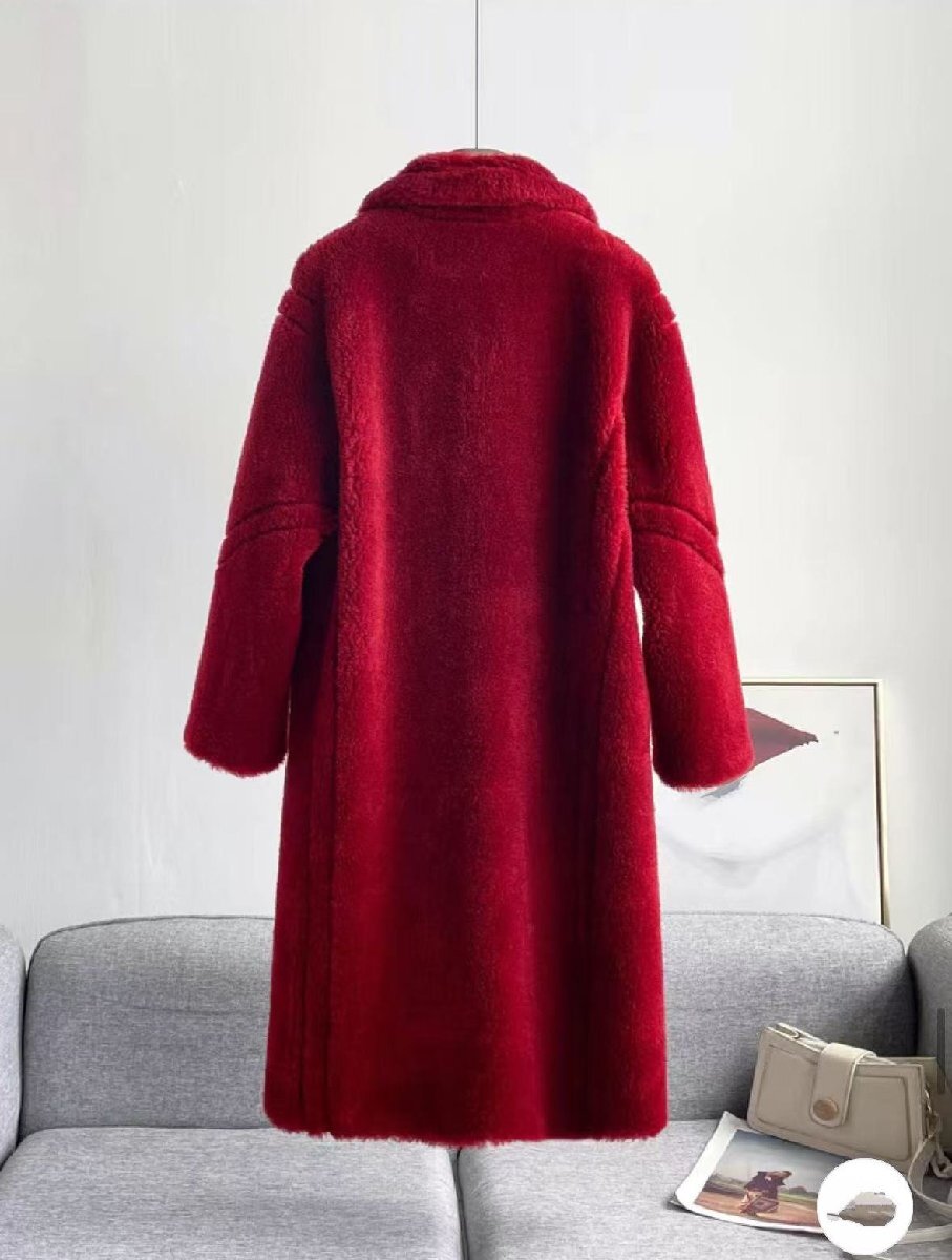 最高級☆優雅の極上リアルファーロングコート☆肉厚毛皮柔らかな手触り贅沢のコート★レッド