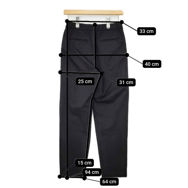 | 実寸サイズ | 総丈:約94cm ウエスト:約33cm ウエスト最長:約40cm 股上:約31cm 股下:約64cm ヒップ:約40cm ワタリ幅:約25cm 裾幅:約15cm ※採寸画像がある商品はハンガーに吊るした状態での計測のため、平置きでの採寸とは差が生じる場合がございます。平置きでの実寸サイズをご希望の場合は、ご購入前に必ずご質問ください。 ※記載以外のサイズが合わないことを理由とした返品はできませんので、 記載部分以外で実寸サイズの気になる箇所があれば必ず購入前にご質問ください。 |