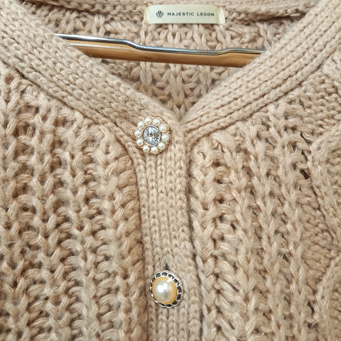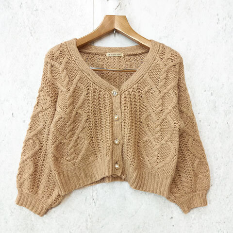 MAJESTIC LEGON マジェスティックレゴン ニット ハートケーブル カーディガン ゆったり ビジューボタン ベージュ Mサイズ