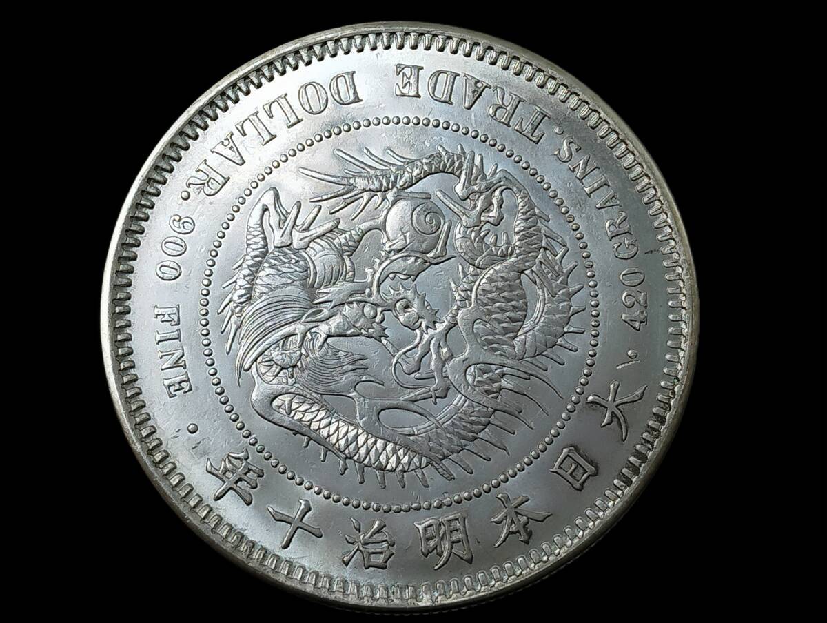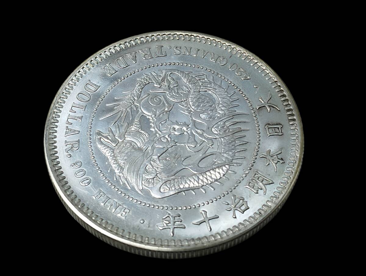 1円スタート  極美品 日本硬貨 明治時代 貿易銀 大日本 明治十年 旭日竜 比重:10.033 銀貨