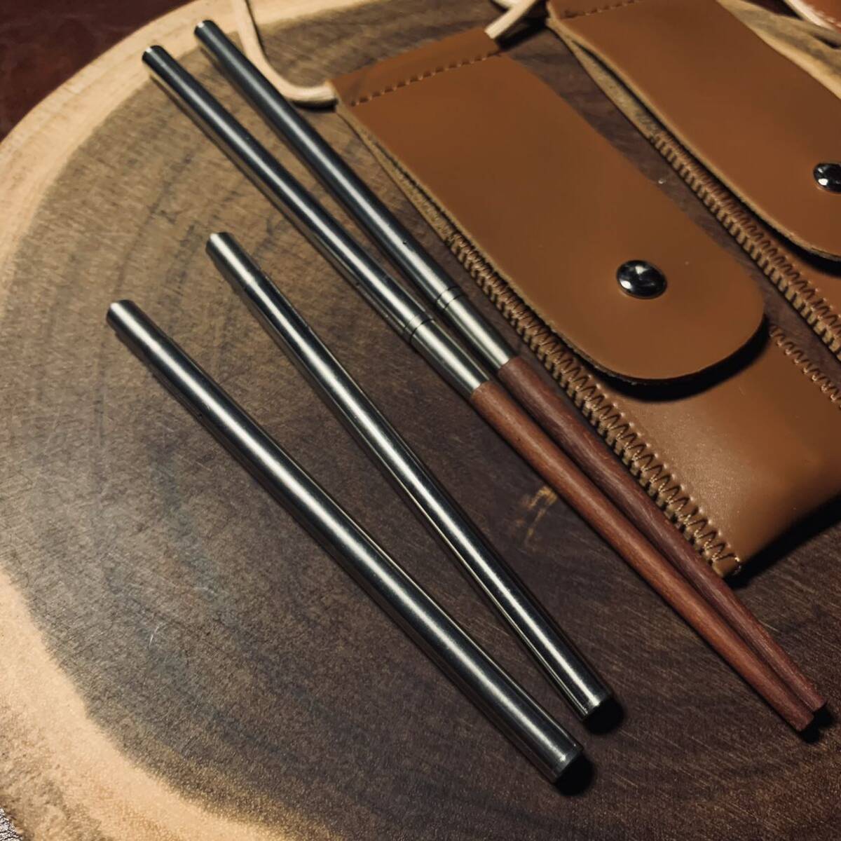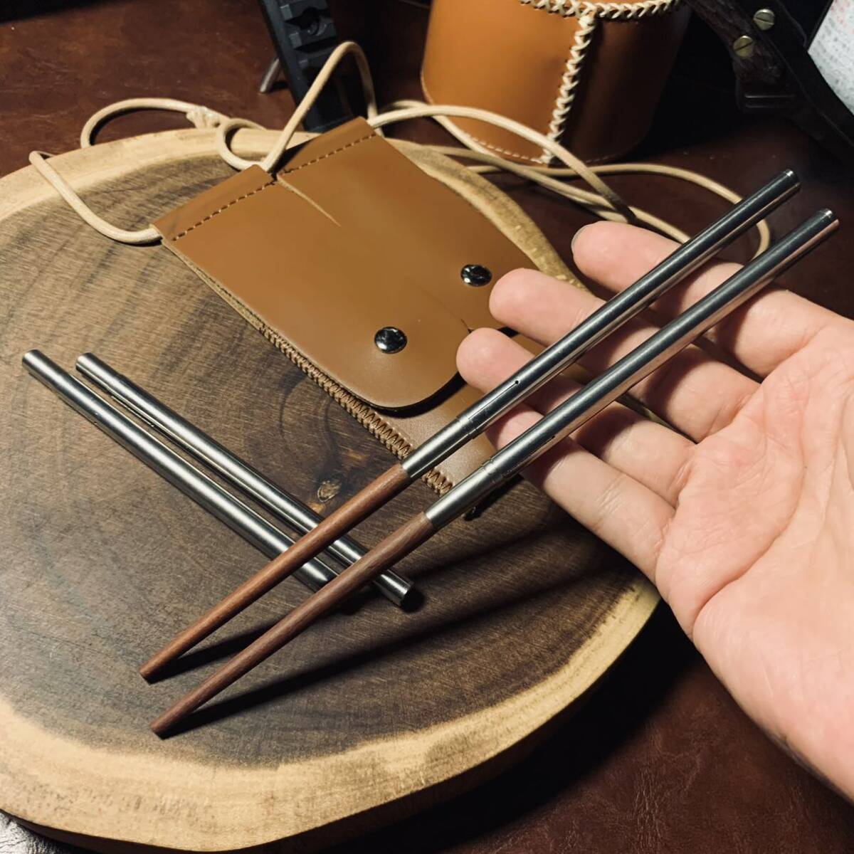 キャップ用 2段式箸 カトラリー 2膳セット 天然木とステンレス製 収納ケース付き アウトドア 野外登山
